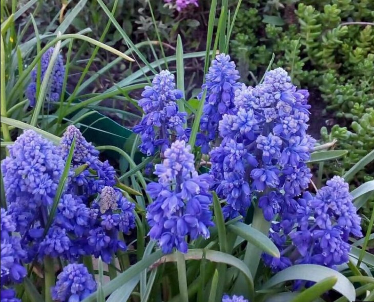 Мускари Blue Spike, именуемый в народе «Небесный колос», – редкая жемчужина среди луковичных. Карликовое растение поднимается всего на 10–15 см, а в исключительных случаях – до 20 см, формируя зеленый каскад узких листьев длиной 12–15 см и шириной до 1,8 см. Листовые пластинки переживают зиму под снежным покровом, сохраняя декоративность участка круглый год.