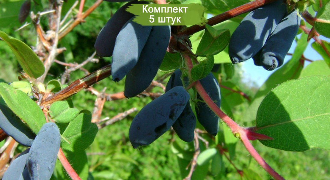 - 5 саженцев жимолости сорта Чулымская, готовых к посадке.