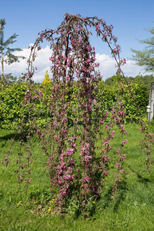 Саженец яблони декоративной Чилс Випинг (Cheal's Weeping) — это изысканное украшение для вашего сада. Этот сорт отличается своей элегантной плакучей формой и обильным цветением. Весной дерево покрывается нежными розовыми цветами, которые привлекают внимание и создают атмосферу уюта и романтики. Летом на ветвях появляются мелкие декоративные яблочки, которые сохраняются до поздней осени, добавляя яркие акценты в садовый пейзаж.